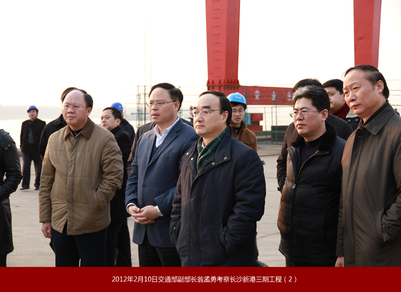 2012年2月10日,交通運(yùn)輸部黨組副書記、副部長(zhǎng)翁孟勇來(lái)長(zhǎng)沙新港考察時(shí)強(qiáng)調(diào):長(zhǎng)沙新港變化一次比一次大,當(dāng)前要借助湖南加大水運(yùn)發(fā)展力度的有利契機(jī),加快樞紐、港口和湘江2000噸級(jí)航道提升建設(shè),更好地服務(wù)經(jīng)濟(jì)社會(huì)和航運(yùn)的持續(xù)發(fā)展。